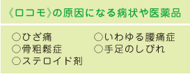 ロコモティブは機関車、移動という意味ですが、医学的には、関節、骨、筋肉などの運動器を意味します。運動器が衰え、段差で転倒や骨折する人が急増していますが、特にひざ痛、腰痛症、骨粗鬆症の人は注意が必要です。